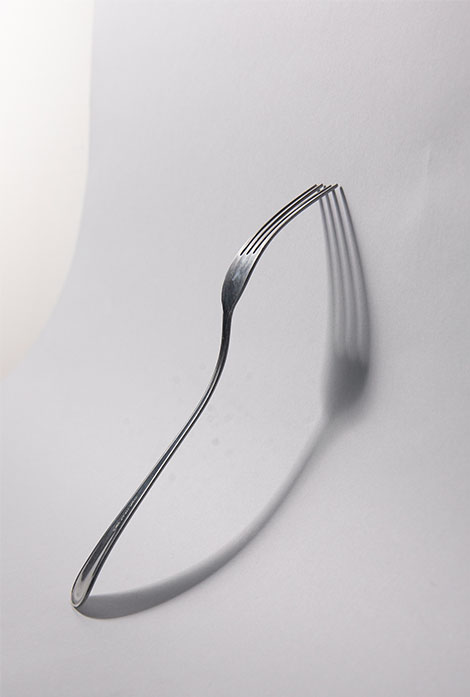 To present the concept again of the introverts I turned my fork towards the wall and projected its shadow so it seems like it is looking again towards it’s self. The individual concepts would be – Appearing and Disappearing. Why? On the portrait photograph person is disappearing – looking towards the audience with its body but head is turned backwards and the object is appearing to the public but turned towards its own shadow.