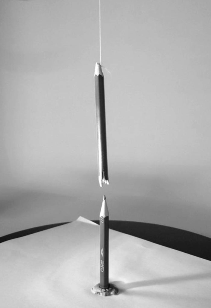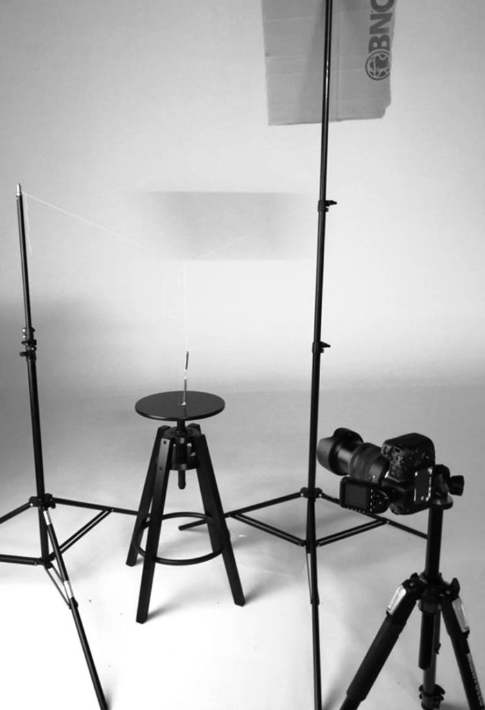 Since this was my first project done in the studio environment, it required a lot of research how to best way possible position the upper and bottom portion of the pencil to be easy to control the light and to achieve the unified look through both portions. I decided to use the clay for bottom part and thread for the upper which I fixed using two classic stands. This allowed me to just manipulate the position of the light until I reached the look I was satisfied with. Read more about it in the process.