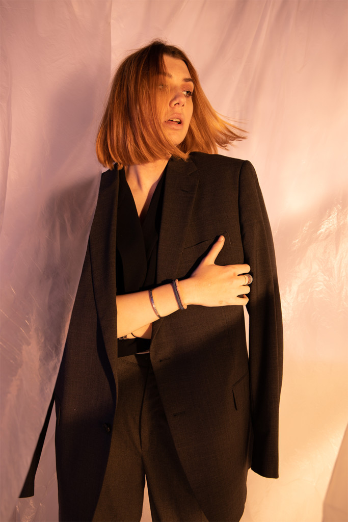 Fashion editorial inspired by the 90’s masculine women, wearing the oversized suits and having short hair. Locating the shoot within the all plastic setup, due to this material resembeling the 90s period overall.