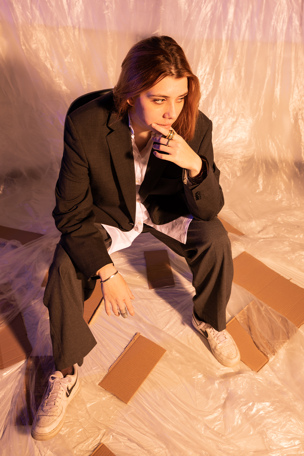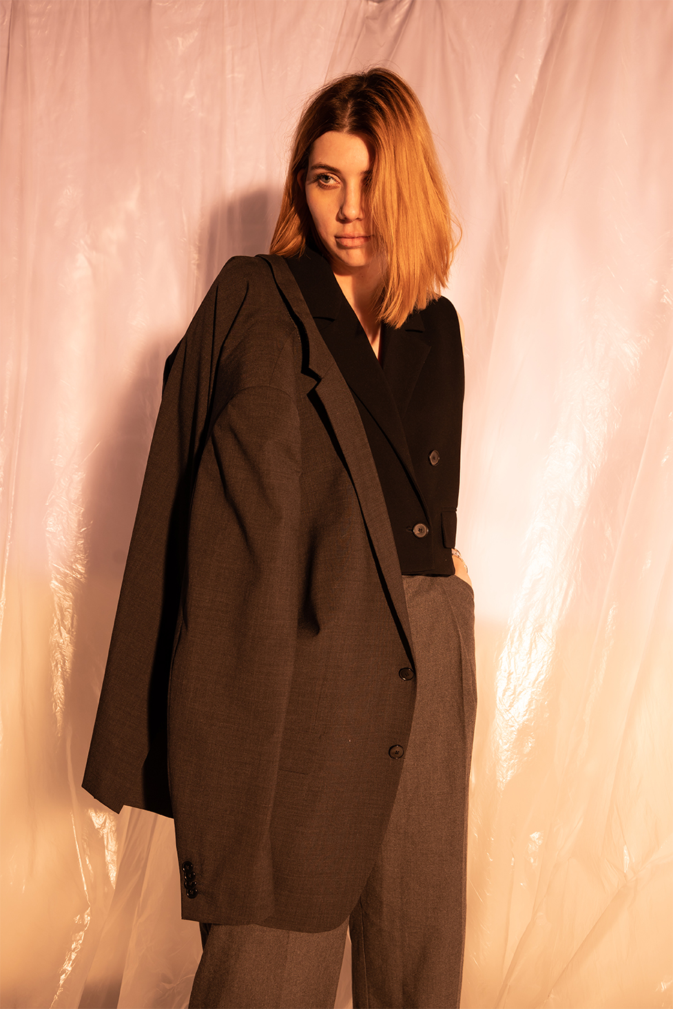 Fashion editorial inspired by the 90’s masculine women, wearing the oversized suits and having short hair. Locating the shoot within the all plastic setup, due to this material resembeling the 90s period overall.
