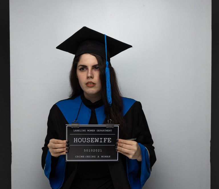 I thought a lot about this project and how to properly present the violence. I decided to go with psychological type where the women receive the comment no matter how they look or what they are doing, they will always get judged on certain point. They are never doing good enough and that’s why I though about labeling the women. With the comments that women receive they are actually judged so I decided to visually solve the labeling in the form of classical mugshot where the each women will be holding the plate with the comment or judgment they would receive. The aesthetics are resembling vintage mugshot style – plate, textures, ad hock photographs, gazing in the distance etc. For this project as well I designed and produced my own plate design.